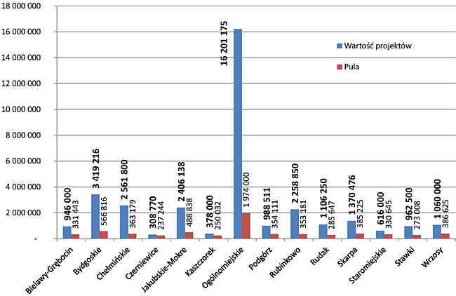 Porównanie wartości złożonych projektów i puli dostępnej dla każdego z osiedli