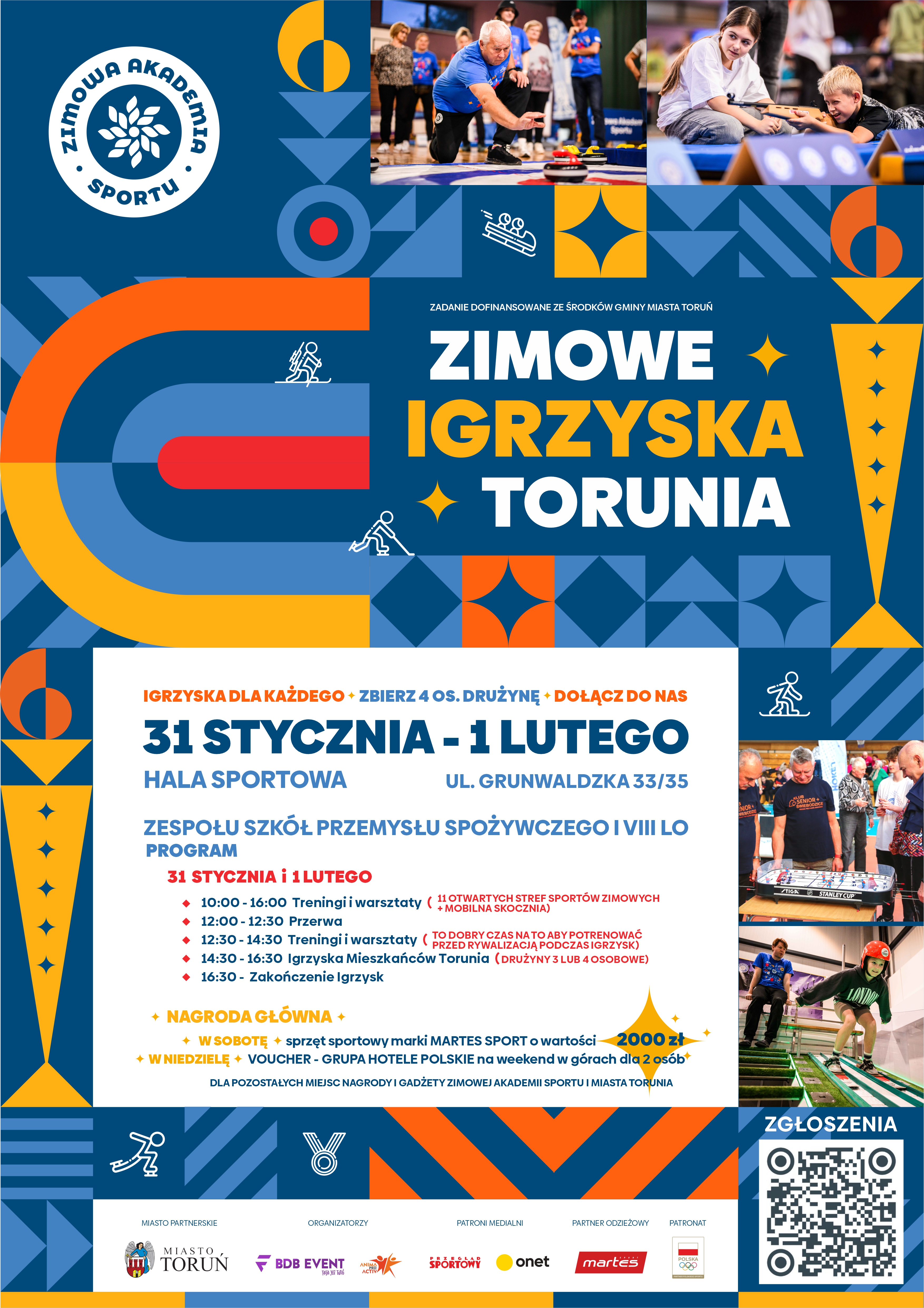 W najbliższy weekend Toruń stanie się areną zimowych sportowych emocji. W Hali Sportowej ZSPS i VIII LO przy ul. Grunwaldzkiej 33/35 odbędzie się Zimowa Akademia Sportu połączona z Igrzyskami Mieszkańców Torunia.