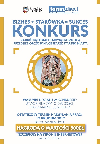 Warunkiem udziału jest nagranie 30-sekundowego filmu z przedsiębiorcami i ich miejscem pracy w roli głównej oraz przesłanie go wraz z kartą zgłoszenia na adres: kontakt@torun.direct do 17 grudnia 2017 roku.