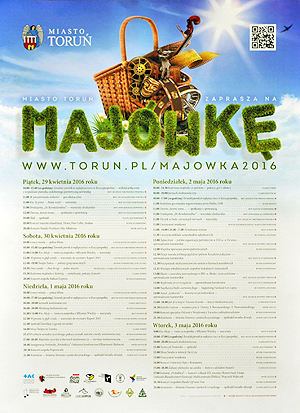 Koordynatorem programu wydarzeń Majówki 2016 jest Toruńska Agenda Kulturalna. Na wiele imprez wstęp jest wolny, ale są i takie, na które należy się zaopatrzyć w wejściówki lub bilety. Na warsztaty obowiązują wcześniejsze zapisy.
