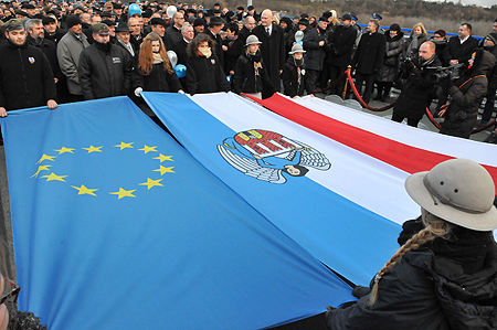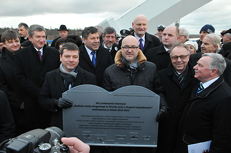 9 grudnia 2013 r. o godzinie 11.00 rozpoczęło się uroczyste otwarcie nowego mostu drogowego w Toruniu. Wówczas to przedstawiciele urzędu miasta oraz wykonawcy symbolicznie połączyli trzy flagi: unijną, miejską i narodową.