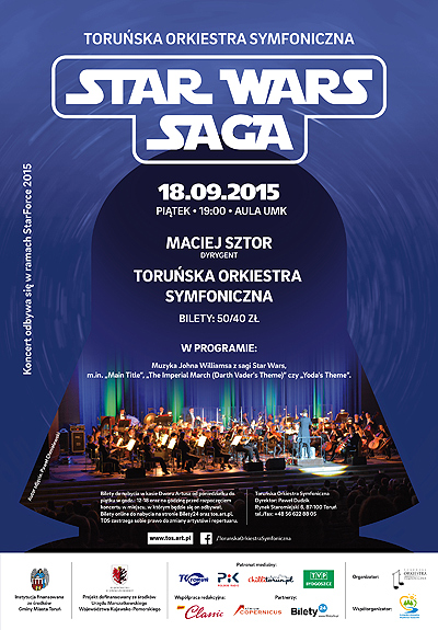 Impreza potrwa w tym roku wyjątkowo aż trzy dni, a nie jak do tej pory – jeden. W piątek o godz.19.00 w auli UMK w atomosferę sagi wprowadzi jej fanów koncert muzyki "Star Wars Saga" w wykonaniu Toruńskiej Orkiestry Symfonicznej pod dyrekcją Macieja Sztora. Usłyszymy najbardziej znane utwory z cyklu, m.in.: Yoda's Theme, Anakin's Theme, Duel of the Fates oraz Imperial March. Ścieżka dźwiękowa z "Gwiezdnych wojen" została uznana przez słuchaczy brytyjskiej stacji Classic FM za najlepszą muzykę filmową wszech czasów, a za muzykę do IV części jej kompozytor – John Williams – został uhonorowany Oscarem. Koncert rozpocznie się utworem wybranym specjalnie dla poszkodowanego w wypadku na torze żużlowca związanego z Toruniem - Darcy’ego Ward'a. Podczas koncertu będą zbierane środki na leczenie sportowca.