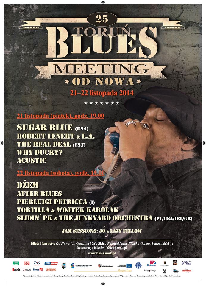 Tegoroczny Toruń Blues Meeting to również spotkanie z artystami z różnych zakątków świata oraz z wieloma odmianami bluesa. Sporo będzie przedstawicieli akustycznego grania. Z Włoch przyjedzie gitarzysta i wokalista Pierluigi Pericca. Jego śpiew ma wręcz pierwotny charakter i nawiązuje do korzeni bluesa. Zgodnie z nazwą bez prądu gra także śląskie trio Acustic, w skład którego wchodzą dwie gitary i harmonijka. Oprócz bluesa w brzmieniu zespołu nie brak także elementów rocka, a nawet rytmów reggae. Nawiązaniem do pierwszej edycji festiwalu będzie występ jednej z najstarszych polskich formacji tego gatunku – After Blues. To duet gitarzystów, którzy nogami obsługują także perkusję. Półakustyczny charakter będzie miał występ Roberta Lenerta & L.A. Harmonijkarz opracował ostatnio piosenki Toma Waitsa w wersji bluesowej i zapewne właśnie utwory z tego projektu zabrzmią podczas festiwalu. Ciekawostką będzie z pewnością występ wielonarodowej formacji Slidin’PK & The Junkyard Orchestra. W jej skład wchodzą muzycy z USA, Irlandii, Wielkiej Brytanii i Polski
