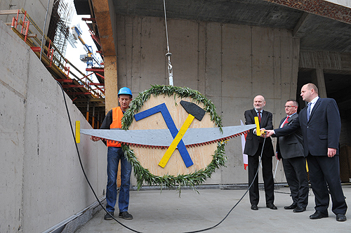Jeden z ważniejszych momentów na budowie wielofunkcyjnej sali koncertowej na toruńskich Jordankach. 15 października 2014 r. nad salą zawisła wiecha. Oznacza to, że budowlańcy dotarli z robotami do najwyższego punktu budynku.