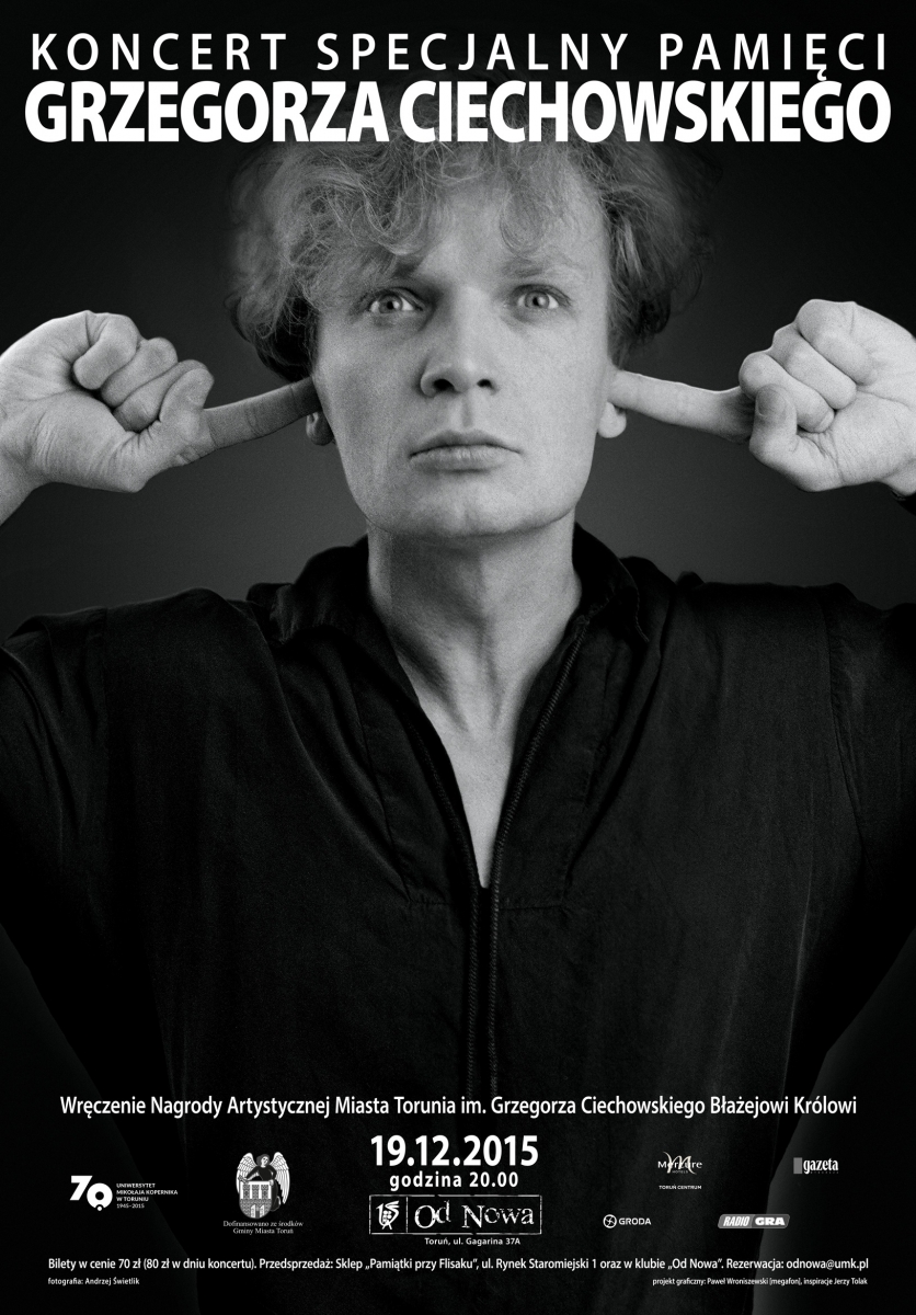 godz. 20.00 - koncert specjalny pamięci Grzegorza Ciechowskiego, wręczenie Nagrody Artystycznej Miasta Torunia im. Grzegorza Ciechowskiego Klub Od Nowa