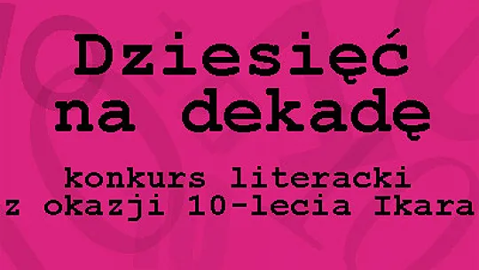 Toruński Informator Kulturalno-Artystyczny „Ikar” kończy we wrześniu 10 lat. Miesięcznik wydawany jest przez Urząd Miasta Torunia nieprzerwanie od 2003 r. Z tej okazji redakcja ogłosiła konkurs literacki pod hasłem „Dziesięć na dekadę”.Data publikacji: 23 July 2013 -