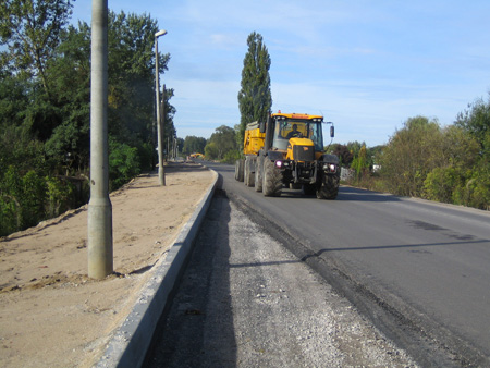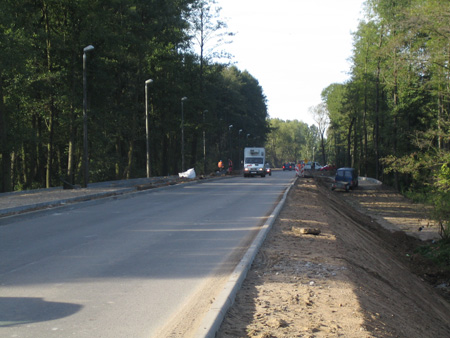 Oprócz robót nawierzchniowych związanych z wykonywaniem konstrukcji jezdni trwa profilowanie skarp, humusowanie terenów zielonych. Równolegle trwają prace brukarskie związane z wykonywaniem chodników, ścieżki rowerowej i zjazdów do posesji. Wykonawca rozpoczął montaż oświetlenia, roboty w tej branży osiągnęły zaawansowanie na poziomie 90%.