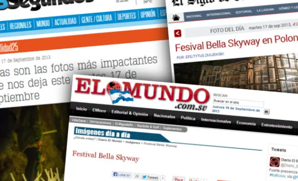 Zapowiedzi i relacje z trwającego w Toruniu Międzynarodowego Festiwalu Światła Bella Skyway Festival podają nie tylko lokalne, regionalne i ogólnopolskie media. Zdjęcia świetlnych instalacji przygotowanych przez artystów światła publikują także światowe media.