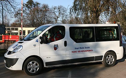 Warto pamiętać, że miasto od lat pomaga w transporcie osób niepełnosprawnych. Usługi przewozowe świadczone są w dni powszednie, od poniedziałku do piątku w godz. 6.30-20.00 oraz w soboty, niedziele i święta w godz. 7.00-18.00 przez cały rok kalendarzowy, a w pierwszą sobotę miesiąca w godz. 7.00-22.00. Zgłoszenia osób zainteresowanych przewozami są przyjmowane bezpośrednio przez przewoźnika pod nr tel 56 648 83 66 lub 191 96. Prawo do korzystania z przewozów mają osoby z widoczną dysfunkcją narządu ruchu, w pierwszej kolejności na wózkach inwalidzkich i niewidome wraz z opiekunem. 90% kosztów pokrywa ze swojego budżetu miasto, a pasażerowie tylko pozostałe 10 %. Przewiduje się, że w 2013 roku z miejskich przewozów skorzysta ok. 12 tys. osób niepełnosprawnych.