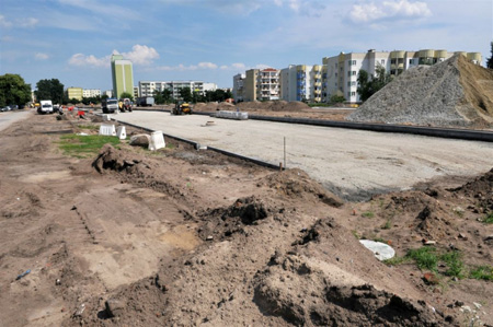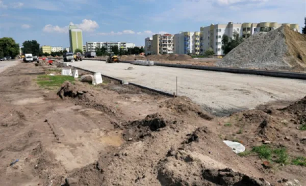Letnia pogoda sprzyja pracom na budowie Trasy Średnicowej Północnej. Codziennie przy powstaniu jednej z większych inwestycji drogowych pracuje co najmniej 70 osób i 15 sztuk ciężkiego sprzętu.