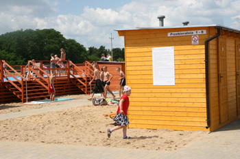 Na basenach znajduje się zjeżdżalnia dla małych dzieci, wypożyczalnia leżaków oraz punkt małej gastronomi. Wokół basenu jest miejsce do plażowania. Są też przebieralnie i toalety. Nad bezpieczeństwem korzystających z obiektu czuwa przez cały czas trzech ratowników oraz ochrona z profesjonalnej firmy. Natomiast o stan wody dbają konserwatorzy obecni na basenach cały dzień, którzy obsługują stacje kontroli i dozowania chemii oraz układ filtracji wody.
