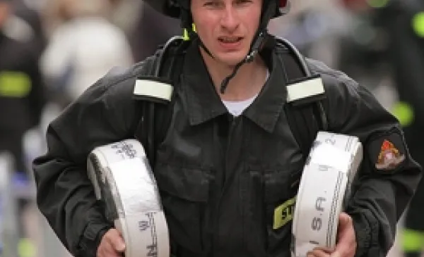 - 300-metrowy bieg z wężami gaśniczymi oraz wejście na 40 m wieżę
