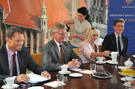 Mówiąc o atrakcjach Torunia i trwających w mieście inwestycjach: budowie hali widowiskowo-sportowej, sali koncertowej i mostu czy projektach komunikacyjnych, prezydent wspomniał też o wybudowanej kilka lat temu Motoarenie, na której w Grand Prix Polski w 2010 r. ścigał się Norweg Rune Holta. Duże zainteresowanie gości wzbudziła informacja o istnieniu w Toruniu Wyższej Szkoły Filologii Hebrajskiej, ponieważ rząd Norwegii wspiera działalność Muzeum Holocaustu w Warszawie.