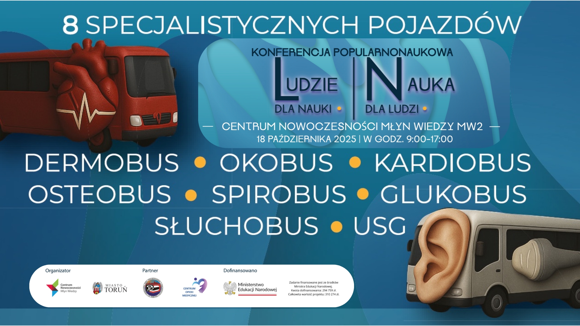 Organizatorem konferencji "Ludzie dla Nauki, Nauka dla Ludzi" jest Centrum Nowoczesności Młyn Wiedzy oraz Gmina Miasta Toruń. Partnerem jest Okręgowa Izba Pielęgniarek i Położnych oraz Centrum Opieki Medycznej w Toruniu. Wydarzenie odbędzie się w ramach Programu "Odkrywcy", dofinansowanego przez Ministerstwo Edukacji Narodowej.
