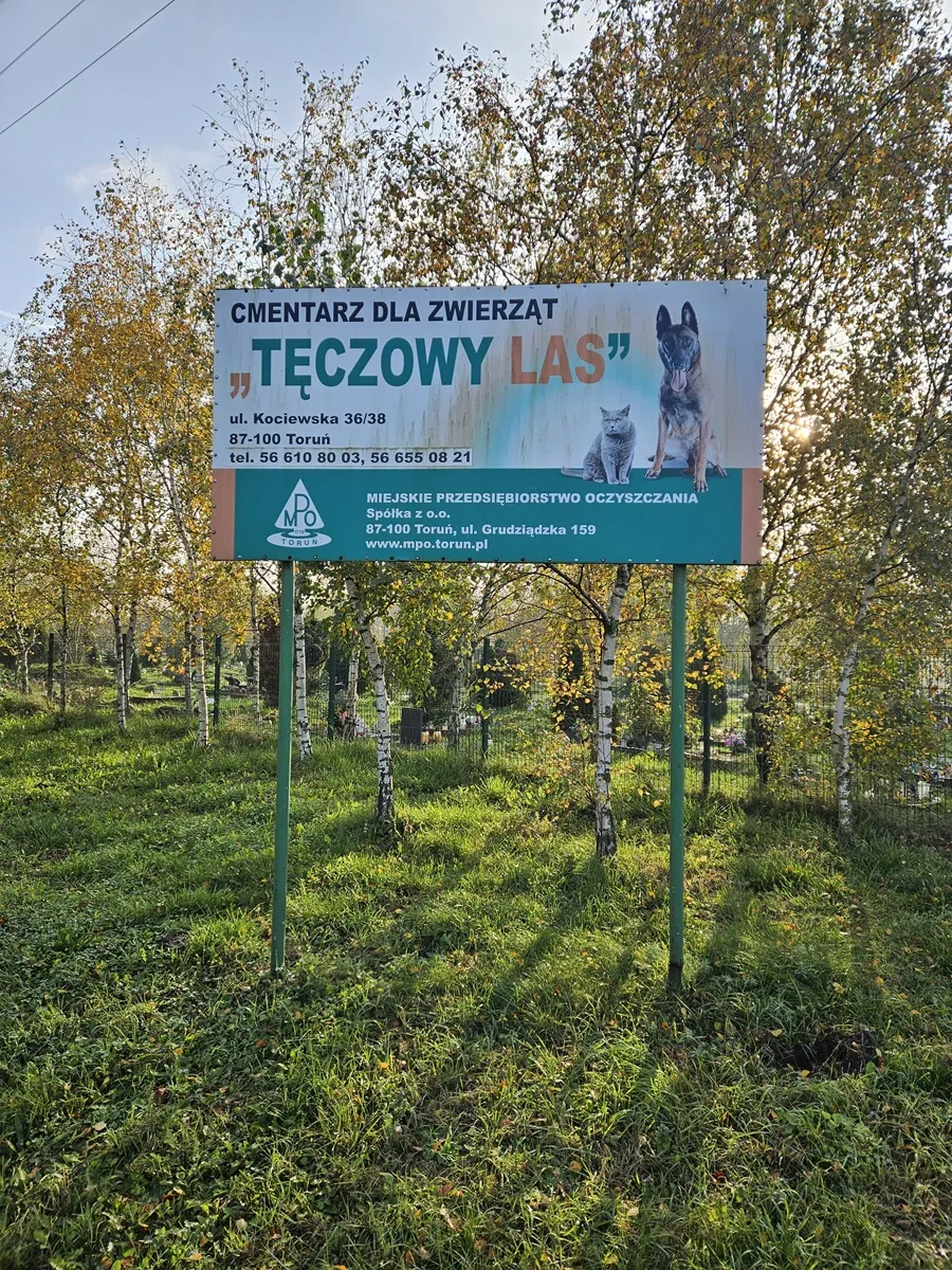 Dla wielu osób zwierzęta to nie tylko towarzysze codzienności, dlatego potrzeba godnego pożegnania naszych pupili staje się równie ważna, jak sama opieka nad nimi za życia. Nic więc dziwnego, że w momencie ich odejścia chcemy uczcić ich pamięć w sposób pełen szacunku, zachować wspomnienia oraz mieć miejsce do którego można wracać – by zapalić znicz, pozostawić drobną pamiątkę lub spędzić chwilę w ciszy i refleksji. Taką przestrzenią w Toruniu jest cmentarz dla zwierząt „Tęczowy Las”, prowadzony przez Miejskie Przedsiębiorstwo Oczyszczania Sp. z o.o. w Toruniu.