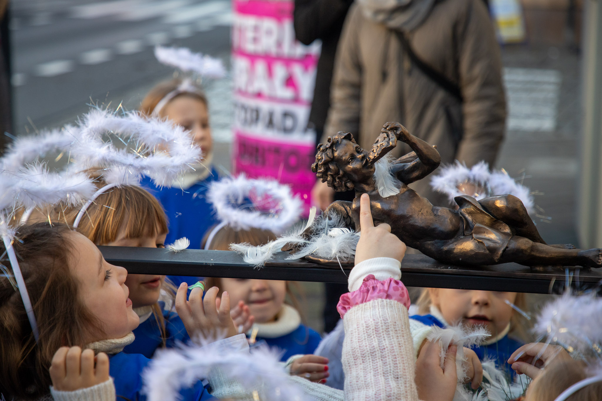 - Jesteśmy w miejscu o dużej koncentracji aniołów, bo piękna grupa dzieci, anioł na muralu „Piecza toruńska” oraz kolejny anioł - mówi zastępca prezydenta Torunia Adam Szponka. – Jak Państwo doskonale wiedzą aniołki mają przeprowadzać naszych turystów bezpiecznie przez miasto, ale co ciekawe mają zachęcać również do innych aktywności, bo pośród naszych monumentalnych kościołów gotyckich aniołki zachęcają nas do relaksu, odpoczynku i takiej chwili dla siebie w takich miejscach jak na przykład restauracja Dom Pizzy i Tapas.