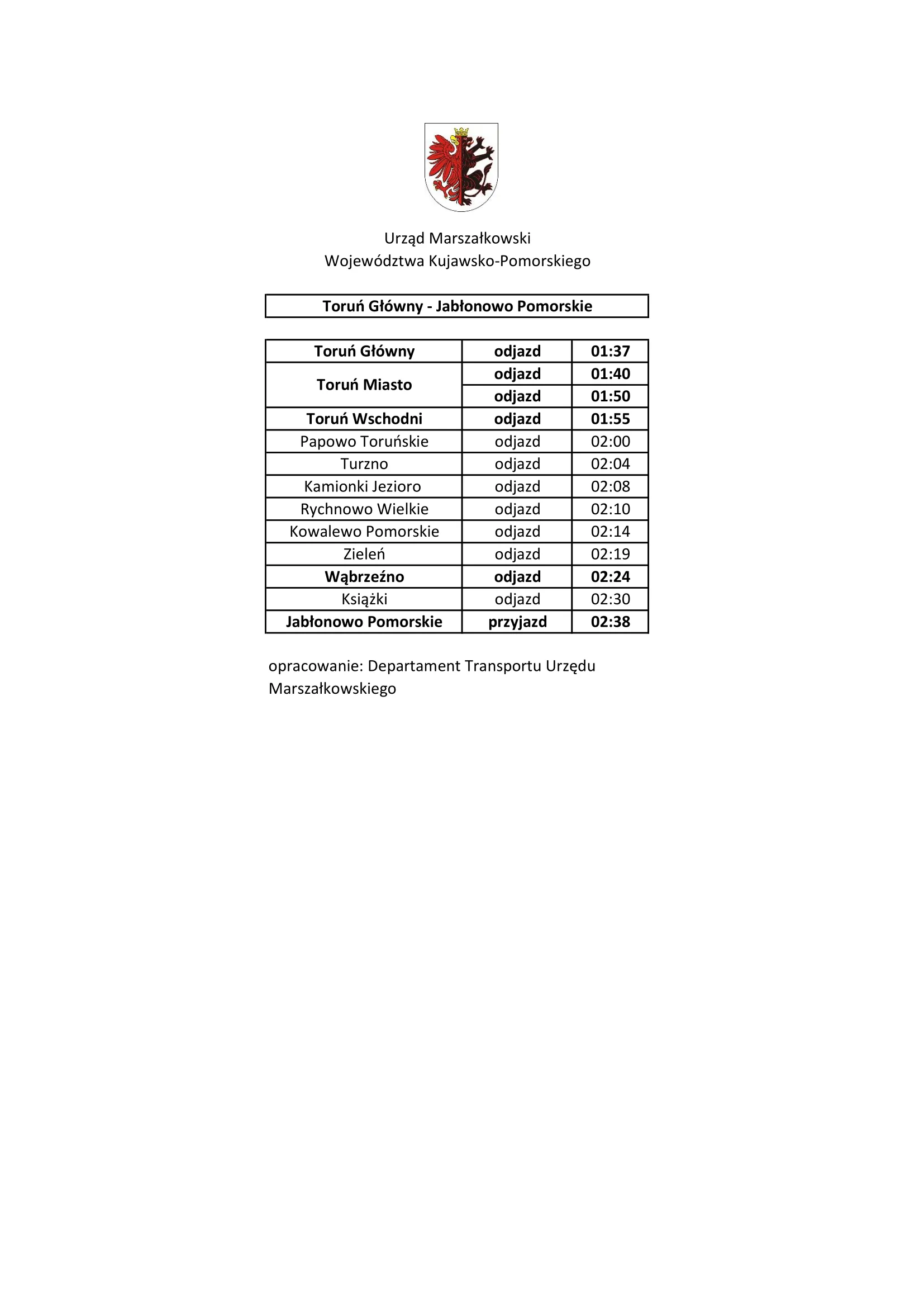 Z Torunia Wschodniego pojadą do: Nakła nad Notecią przez Bydgoszcz, do Mogilna przez Inowrocław oraz do Kalisk Kujawskich przez Włocławek. Z Torunia Głównego wyruszą składy do: Jabłonowa Pomorskiego przez Wąbrzeźno, do Tucholi przez Grudziądz oraz do Skępego przez Lipno.