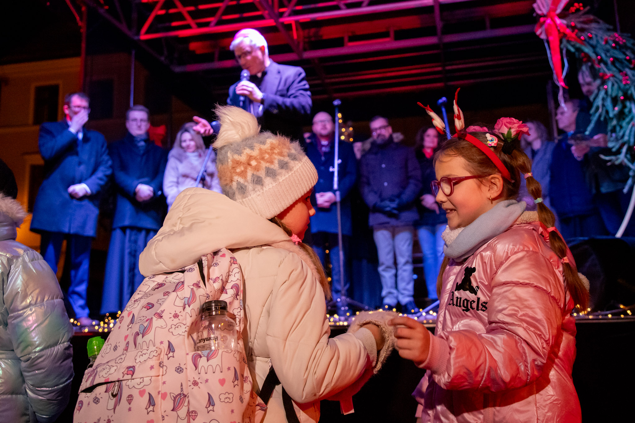 Dziś na Rynku Nowomiejskim w Toruniu odbyła się tradycyjna Wigilia Miejska – plenerowe spotkanie przedświąteczne skierowane do mieszkańców Torunia. Wydarzenie rozpoczęło się o godz. 16.30 i zgromadziło licznych torunian, którzy wspólnie dzielili się opłatkiem, kolędowali i korzystali z przygotowanego poczęstunku.