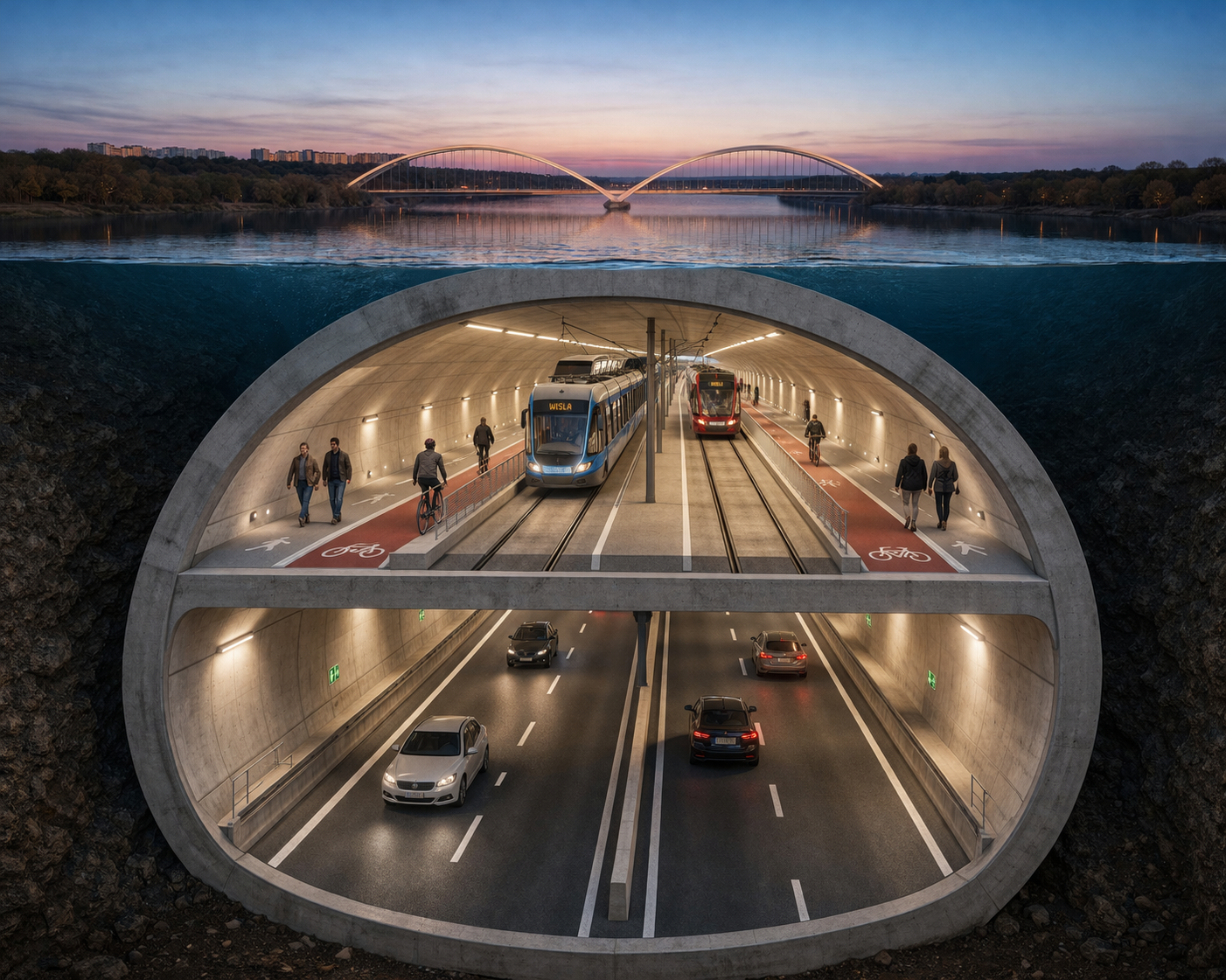 Dwupoziomowy tunel pod Wisłą stanowiłby jeden z kluczowych elementów długofalowej strategii rozwoju miasta. - Rozdzielenie funkcji transportowych - ruchu samochodowego na dolnym poziomie oraz transportu publicznego i ruchu aktywnego na poziomie górnym - pozwala na zwiększenie przepustowości, bezpieczeństwa i komfortu użytkowników. Koncepcja wpisuje się w ideę zrównoważonej mobilności, ograniczając presję na istniejącą infrastrukturę mostową i poprawiając spójność układu komunikacyjnego po obu stronach rzeki - zaznacza Ireneusz Makowski, dyrektor Miejskiego Zarządu Dróg w Toruniu.