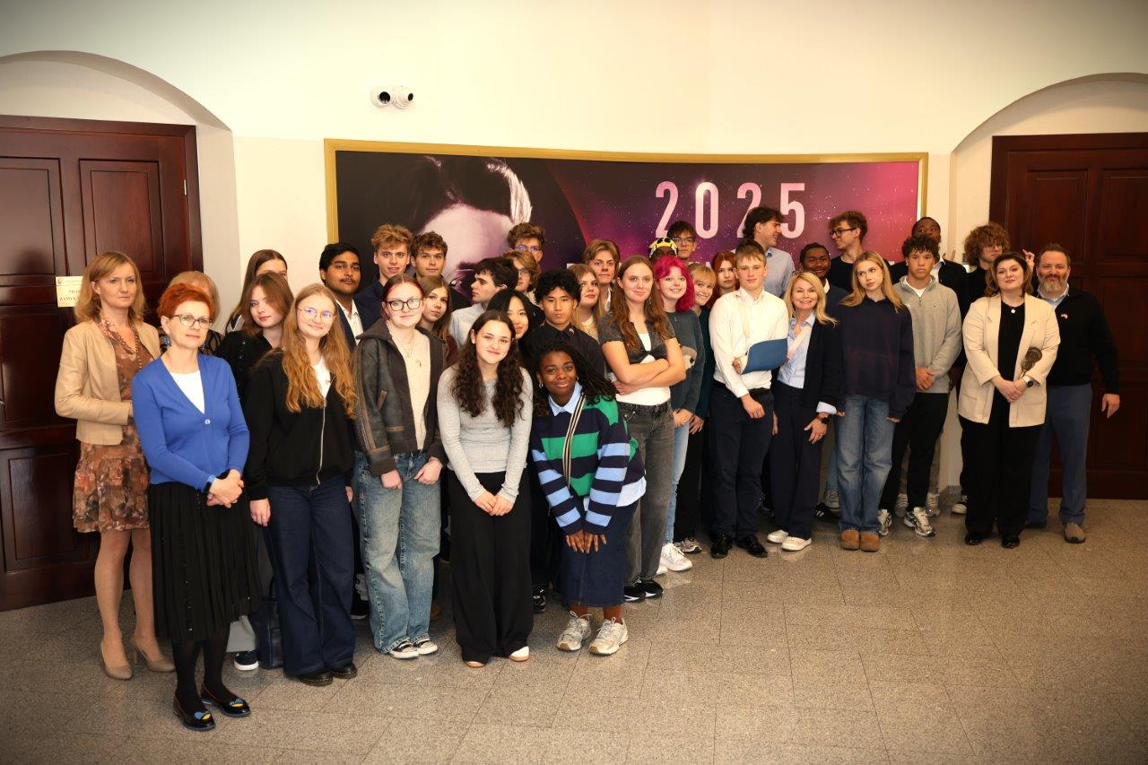 Jednym z punktów wizyty było spotkanie w Urzędzie Miasta Torunia, gdzie młodzież przyjęła Sylwia Żebrowska – Kierownik Referatu Reprezentacji i Współpracy Zewnętrznej Gabinetu Prezydenta Miasta Torunia. Podczas wizyty uczniowie mieli okazję zapoznać się z funkcjonowaniem władz samorządowych, w tym z zadaniami Rady Miasta jako organu uchwałodawczego oraz Prezydenta – organu wykonawczego, odpowiedzialnego za codzienne funkcjonowanie miasta i realizację uchwał rady.