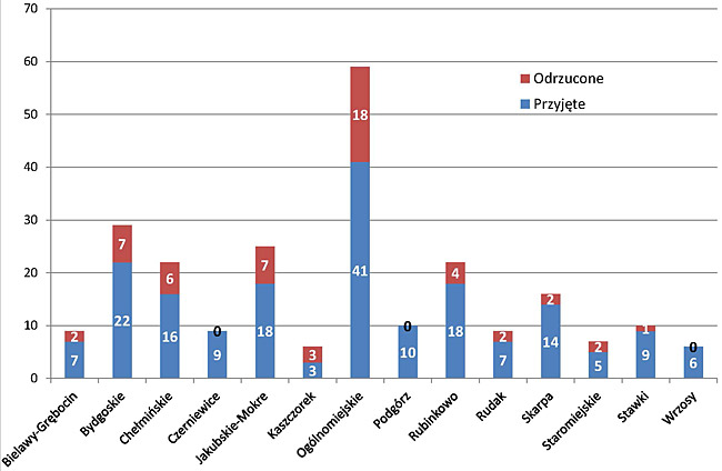 i odrzuconych z podziałem na osiedla