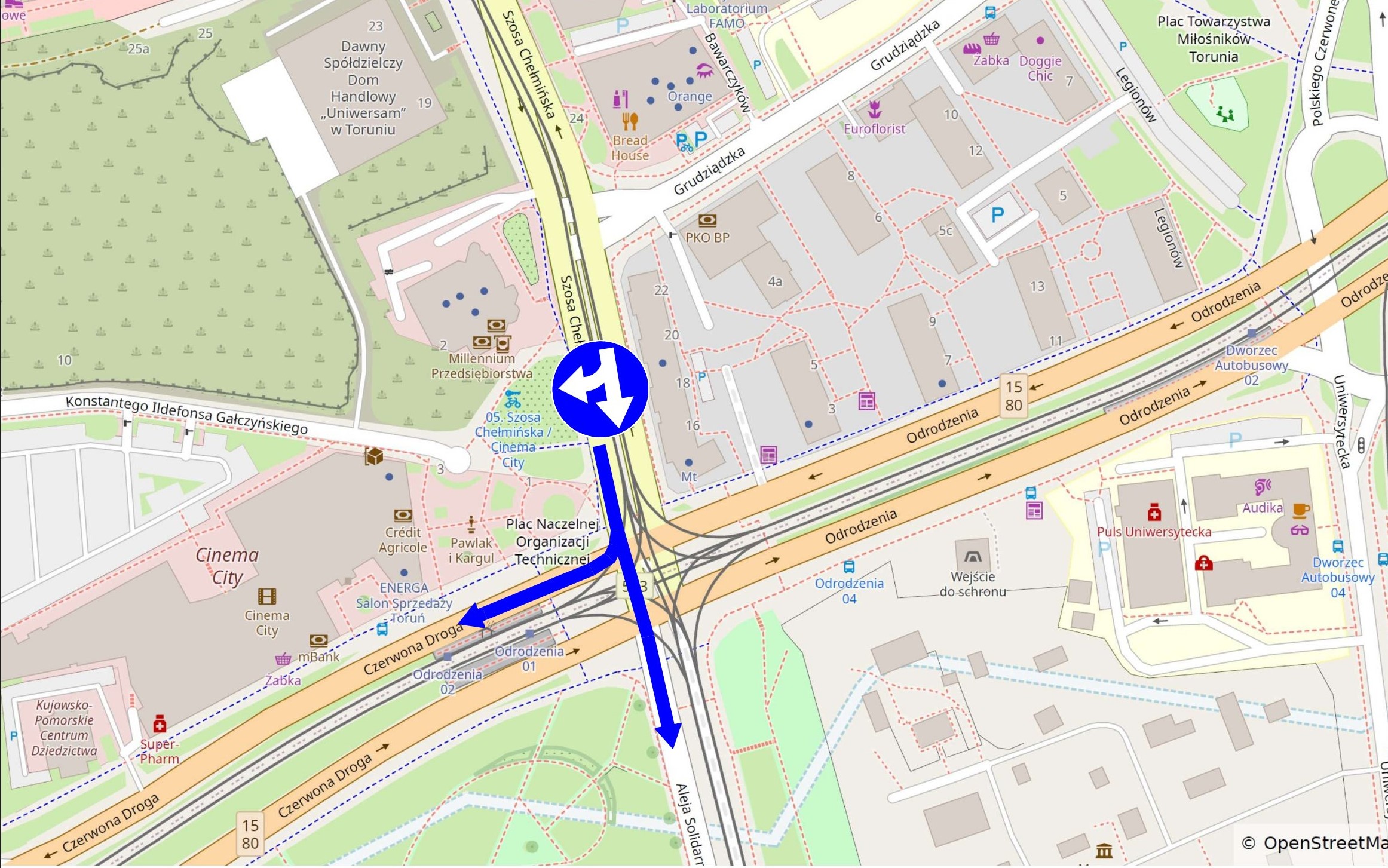 Zmianie ulegnie także organizacja ruchu na placu NOT. W czasie mistrzostw, od 13 do 23 marca, możliwy będzie przejazd na wprost z Szosy Chełmińskiej w aleję Solidarności. Możliwy będzie także skręt z Szosy Chełmińskiej w Czerwona Drogę.