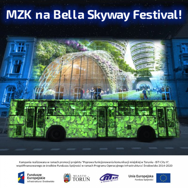 Projekcja zrealizowana w ramach kampanii promocyjnej projektu „Poprawa funkcjonowania komunikacji miejskiej w Toruniu – BiT-City II”, współfinansowanego z Funduszu Spójności - Programu Operacyjnego Infrastruktura i Środowisko 2014-2020.