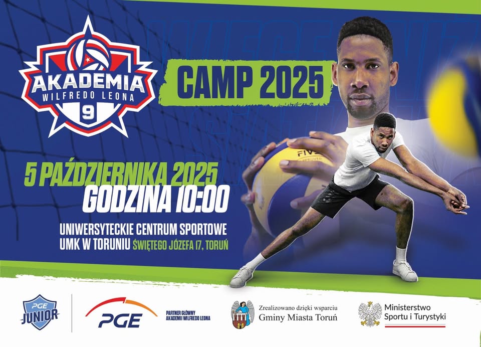 Po raz czwarty zapraszamy dzieci i młodzież na rodzinny trening siatkówki, który zostanie przeprowadzony pod okiem jednego z najlepszych siatkarzy na świecie – Wilfredo Leona. Camp odbędzie się w niedzielę, 5 października 2025 r. o godz. 10:00 w hali sportowej Uniwersyteckiego Centrum Sportowego UMK w Toruniu.