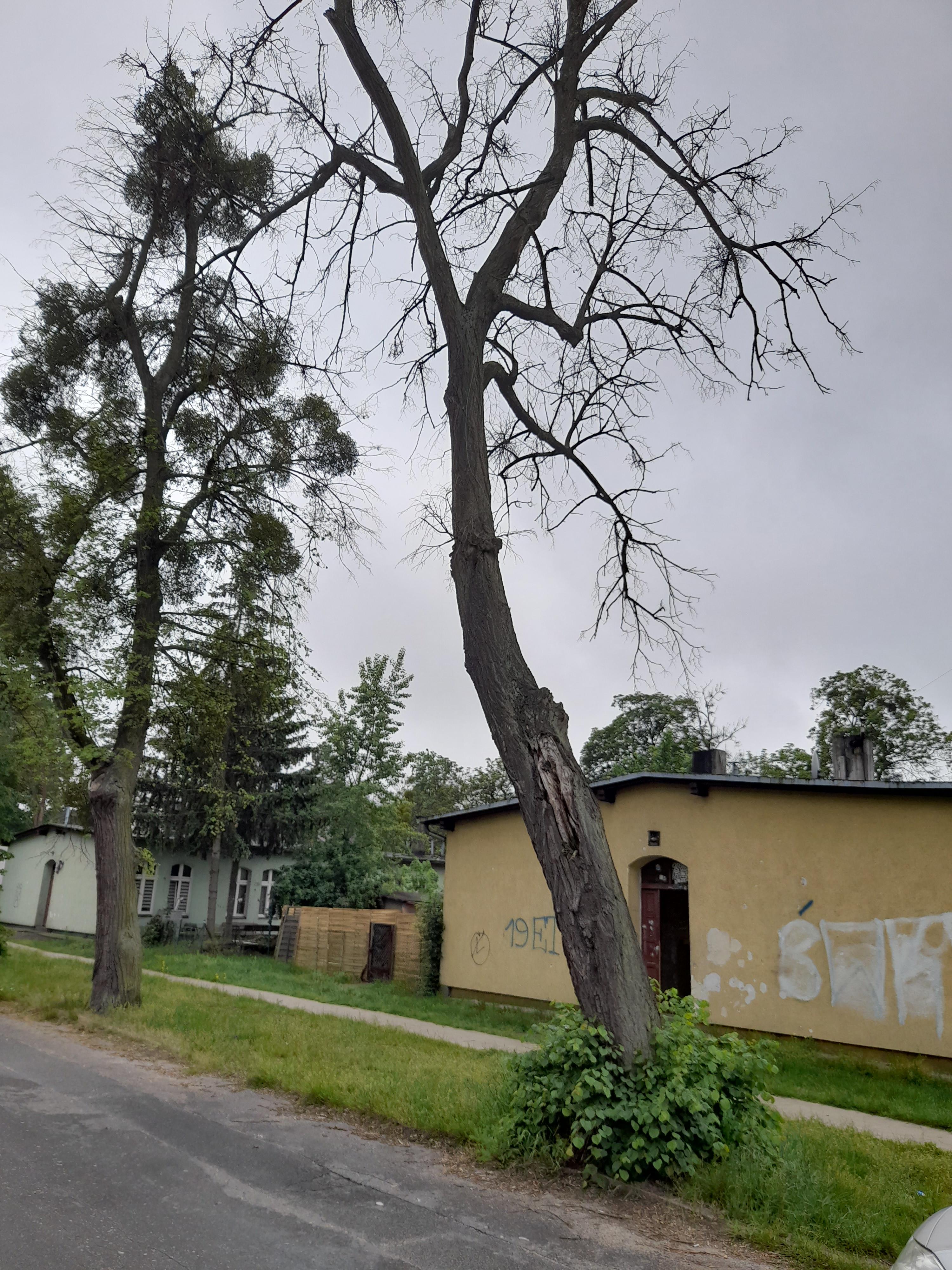 - zakres prac: drzewa obumarłe, stanowią zagrożenie dla bezpieczeństwa osób i mienia