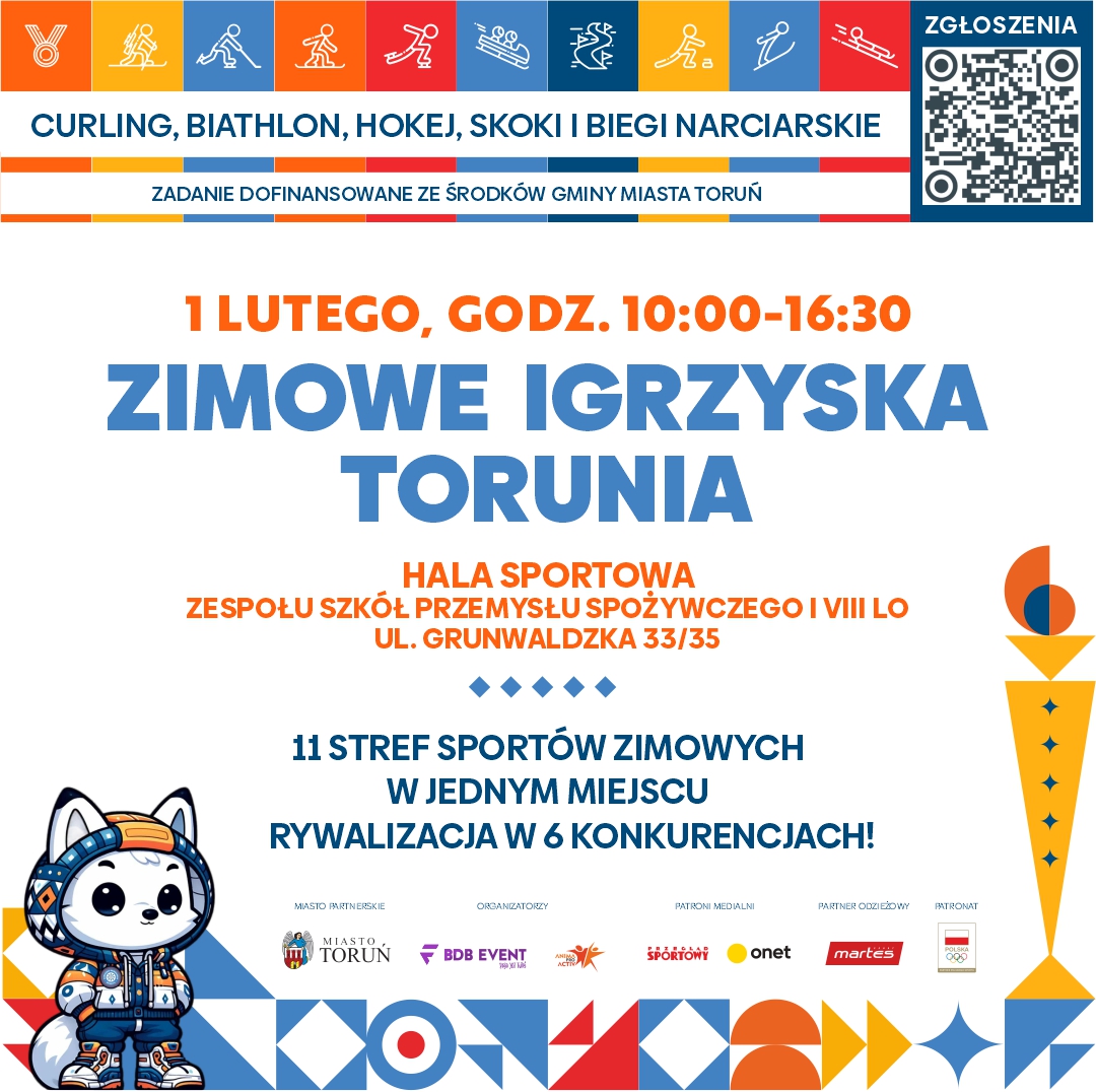 W najbliższy weekend Toruń stanie się areną zimowych sportowych emocji. W Hali Sportowej ZSPS i VIII LO przy ul. Grunwaldzkiej 33/35 odbędzie się Zimowa Akademia Sportu połączona z Igrzyskami Mieszkańców Torunia.
