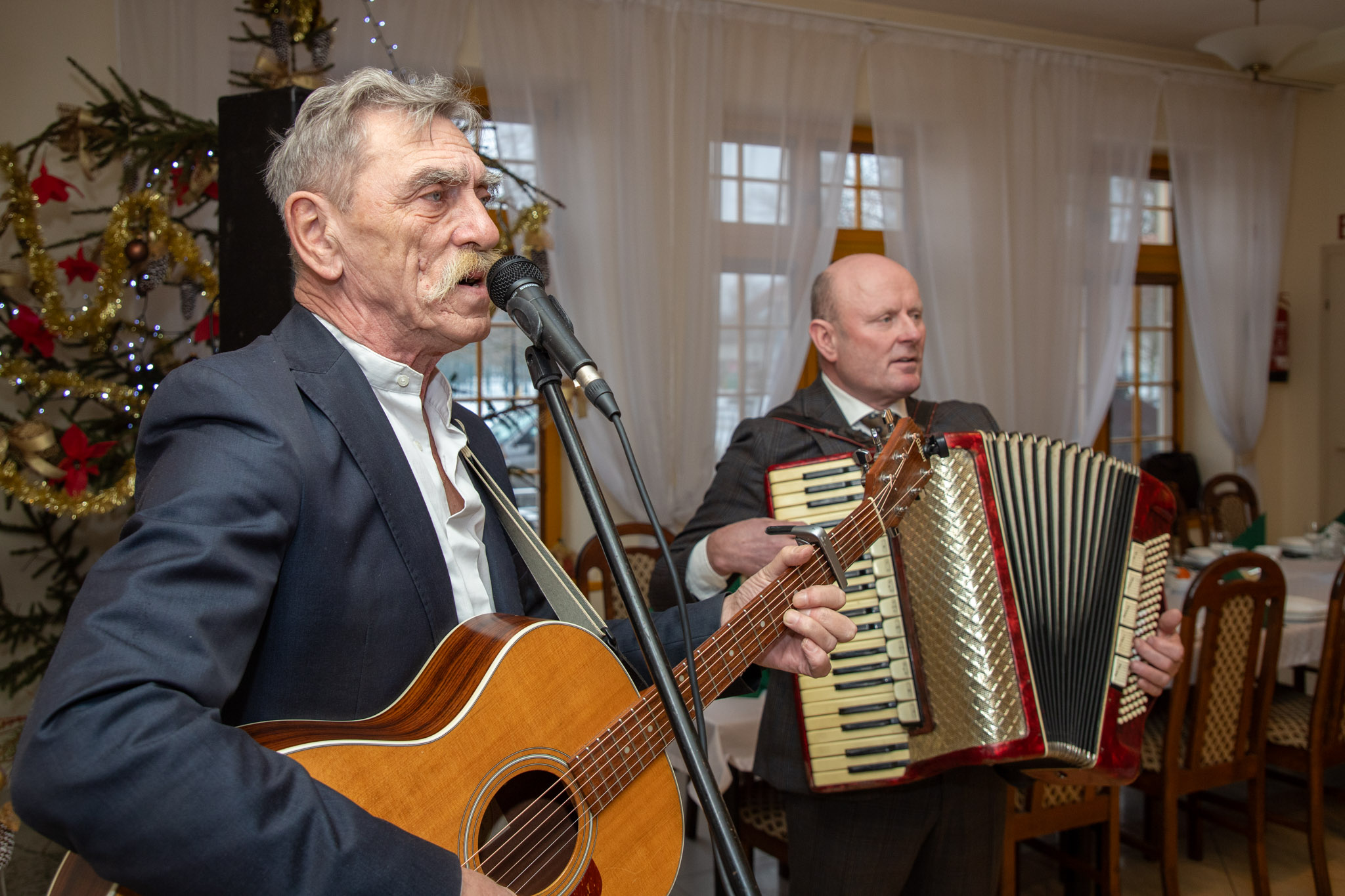 Wspólne śpiewanie kolęd odbywało się przy akompaniamencie muzyków, z Jackiem Beszczyńskim na czele, tworząc wyjątkową i rodzinną atmosferę. Nie zabrakło również serdecznych życzeń oraz gratulacji składanych ks. prałatowi Danielowi Adamowiczowi z okazji jubileuszu.