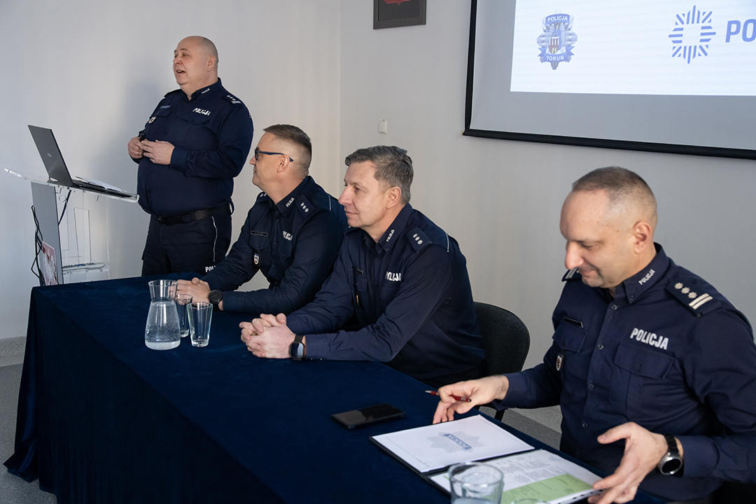 Podsumowanie zeszłorocznej służby policji na rzecz bezpieczeństwa mieszkańców Torunia i powiatu odbyło się 19 stycznia 2026 roku w Komendzie Miejskiej Policji w Toruniu.