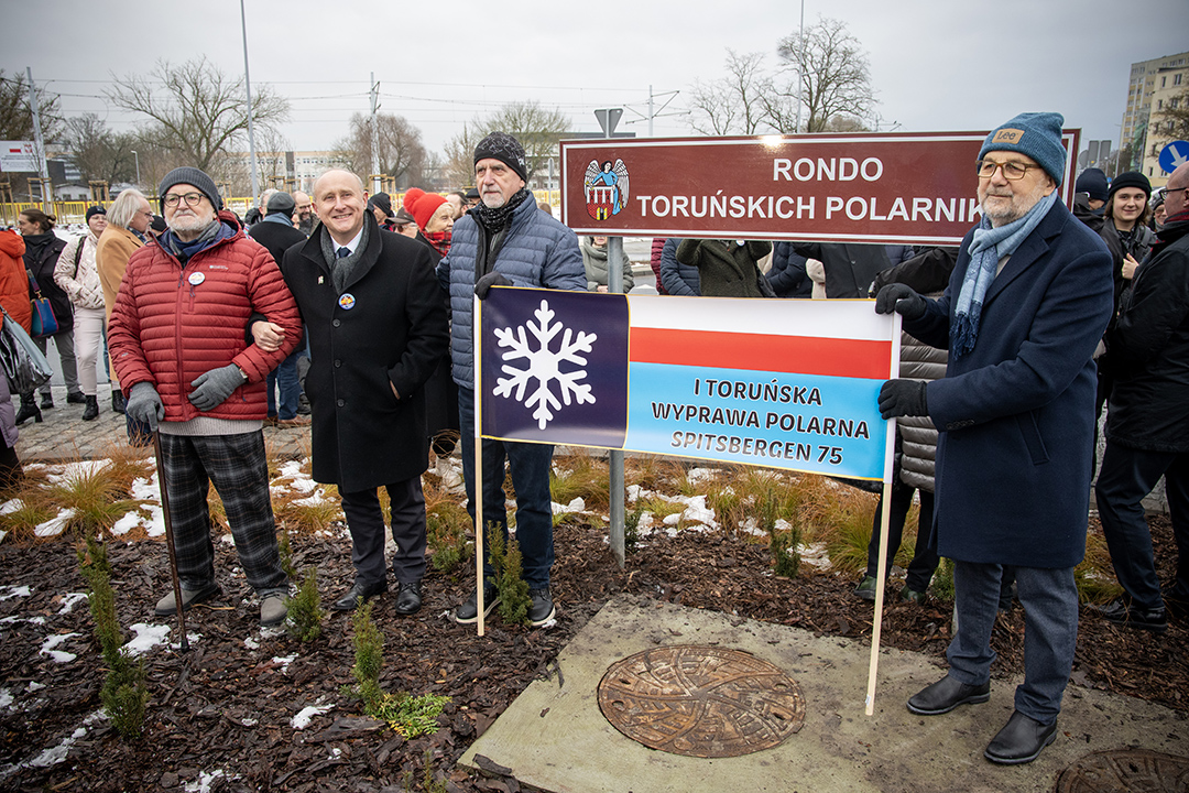 - Realizujemy dziś tak naprawdę uchwałę Rady Miasta Torunia z 12 czerwca, gdzie radne i radni miasta Torunia podjęli jednomyślną decyzję o nadaniu nazwy temu rondu, właśnie u zbiegu ulicy Szosa Okrężna i Gagarina, Rondo Toruńskich Polarników. To oczywiście ma taki symboliczny związek z 50-leciem istnienia stacji polarnej UMK na Spitsbergenie, ale jest także wspólnym hołdem i podziękowaniem dla tych wszystkich pokoleń toruńskich polarników, pracowników naszego Uniwersytetu, którzy przez wiele, wiele lat tą placówkę budowali i tworzyli - mówił Przewodniczący Rady Miasta Torunia Łukasz Walkusz. - Bez wątpienia warto również dodać, że jakim ważnym dla nas jest ta stacja pod kątem promocyjnym, bo przecież od wielu lat sławi nasze miasto, które jak wiemy ma aspiracje metropolitalne i takie placówki tak naprawdę są nieocenionym świadectwem tego charakteru miasta, który jest miastem wyjątkowym z aspiracjami naukowymi, nie tylko w kraju, ale również tam w tej krainie wiecznej zmarzliny, na Spitsbergenie.