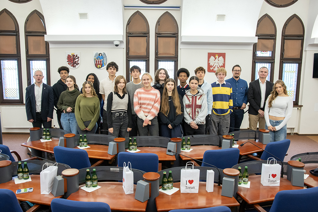 Uczniowie z Filadelfii wraz z uczniami I LO w Toruniu spotkali się z Sekretarzem Miasta Torunia Przemysławem Kuczkowskim w sali obrad Urzędu Miasta Torunia.