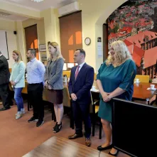 Dziesięcioro nowych pracowników Urzędu Miasta Torunia złożyło 6 września 2022 r. w obecności prezydenta ślubowanie na sztandar miasta.