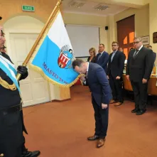 Procedurę wieńczy ślubowanie na sztandar miasta: Ślubuję uroczyście, że na zajmowanym stanowisku będę służyć państwu polskiemu i wspólnocie samorządowej, przestrzegać porządku prawnego i wykonywać sumiennie powierzone mi zadania.