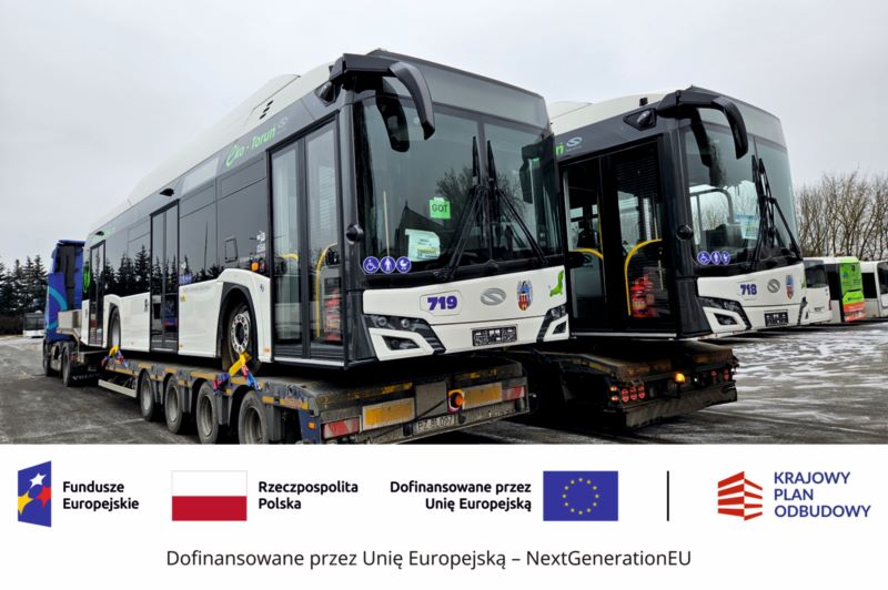 Dzisiejsza i środowa dostawa jest realizowana w ramach projektu "Zakup autobusów zeroemisyjnych wraz z niezbędną infrastrukturą do ładowania - Etap III", który jest współfinansowany w formie bezzwrotnej ze środków UE, z Krajowego Planu Odbudowy i Zwiększania Odporności w ramach Inwestycji: G 1.3.2 Zeroemisyjny transport zbiorowy (autobusy).