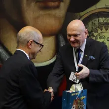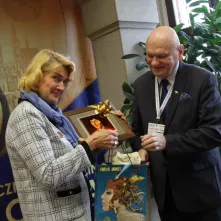Na zakończenie gościom wręczono drobne upominki w postaci pamiątkowych obrazków i paczek z toruńskimi piernikami. Dodatkowo, prezes PZLA Masters Wacław Karnkowski z rąk prezydenta Zaleskiego odebrał list gratulacyjny za swoją działalność, a także za ostatnie medalowe występy na 9. Halowych Mistrzostwach Świata w Lekkiej Atletyce Masters. W ostatnich dniach zdobył on trzy zlote medale - w rzucie ciężarkiem, rzucie młotem i pchnięciu kulą.