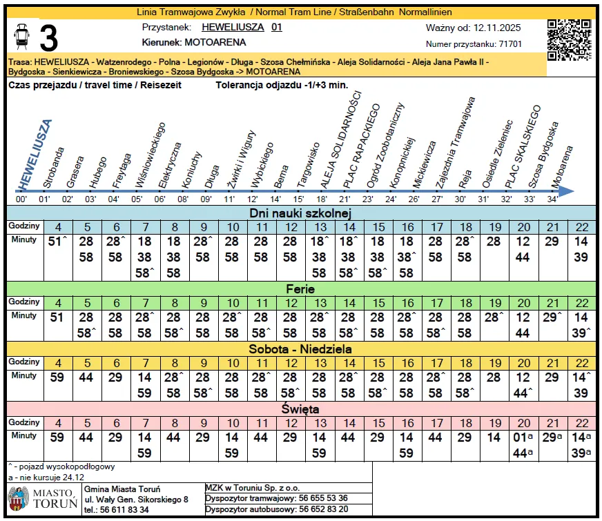 - kurs linii nr 3 z godz. 19:59 na 20:12.