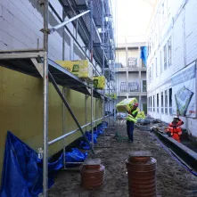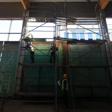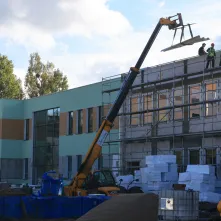 Na zewnątrz prowadzone są prace elewacyjne na budynku szkoły i hali sportowej oraz planowane jest przygotowanie robót drogowych. Oprócz tego w budynku hali trwa montaż stolarki okiennej i tynkowanie ścian.
