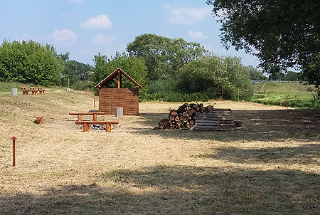 Obok zadaszenia urządzono miejsce na ognisko z drewnianymi ławkami . Na terenie postoju ustawiono też stojak rowerowy na 5 rowerów oraz 4 betonowe kosze na śmieci. Wyznaczono też i wyrównano teren pod 10 namiotów, gdyby kajakarze chcieli tam przenocować.