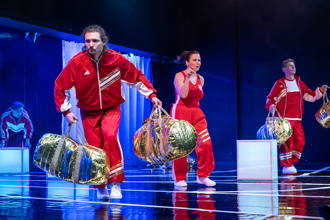 „Królowa sportu” to opowieść inspirowana światem lekkiej atletyki i sportowej rywalizacji, w której dynamika sportu spotyka się z teatralną formą. Twórcy sięgają po motyw sportowej pasji, determinacji i ceny, jaką czasem trzeba zapłacić za sukces. W realizacji spektaklu ważną rolę odgrywają również elementy muzyczne oraz choreografia, które podkreślają rytm opowieści i energię scenicznych wydarzeń.
