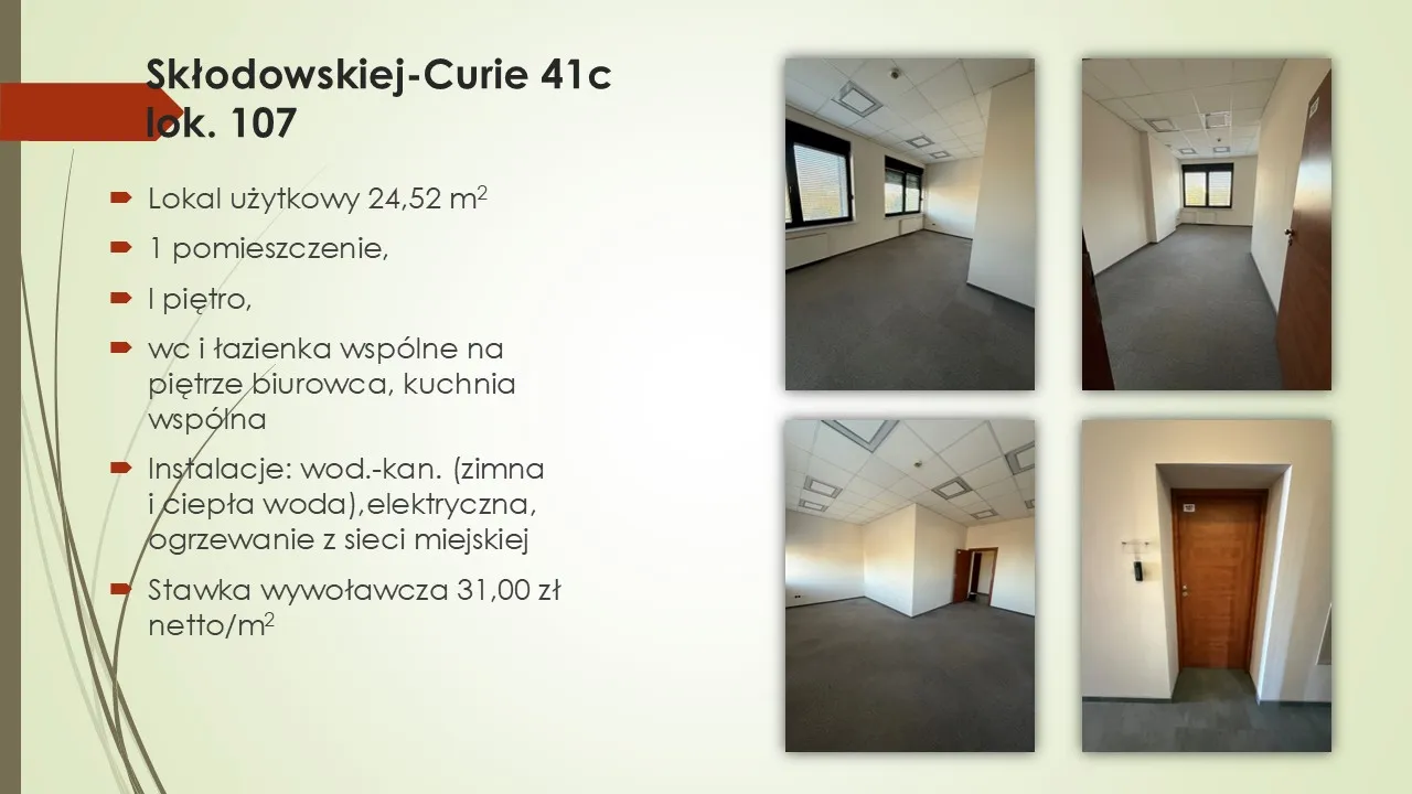 Postępowanie ma formę przetargu ustnego, podczas którego zainteresowani najemcy będą mogli licytować stawkę czynszu. Do wylicytowanej kwoty doliczony zostanie podatek VAT w wysokości 23 proc., a w przypadku lokali użytkowych także koszty eksploatacyjne oraz media rozliczane w cyklu miesięcznym.