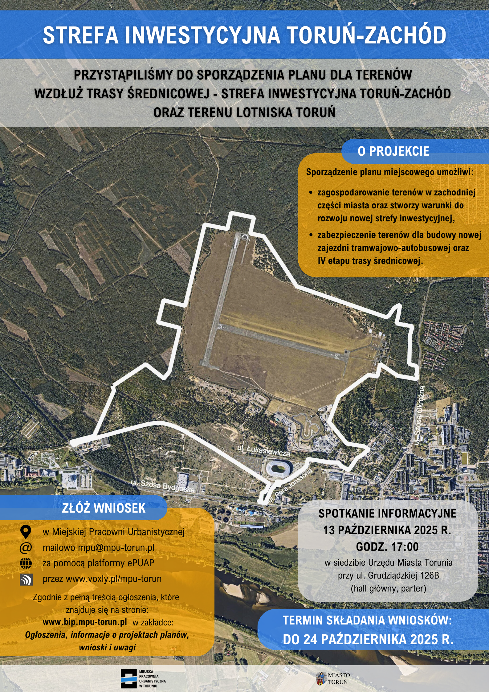 Miejska Pracownia Urbanistyczna rozpoczęła przyjmowanie wniosków do projektu miejscowego planu zagospodarowania przestrzennego dla strefy inwestycyjnej Toruń Zachód oraz terenu Lotniska Toruń.