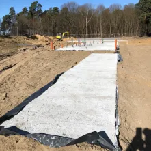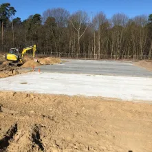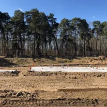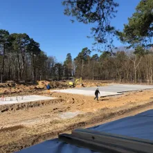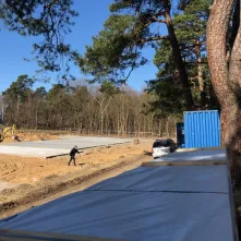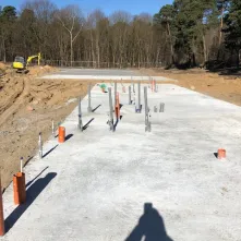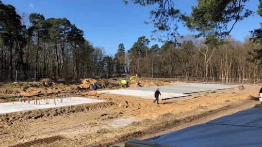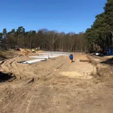 W ramach prac zostały już wylane płyty betonowe pod trzy niecki basenów. 6 kwietnia 2018 roku zaczęło się też stawianie drewnianego budynku socjalnego.