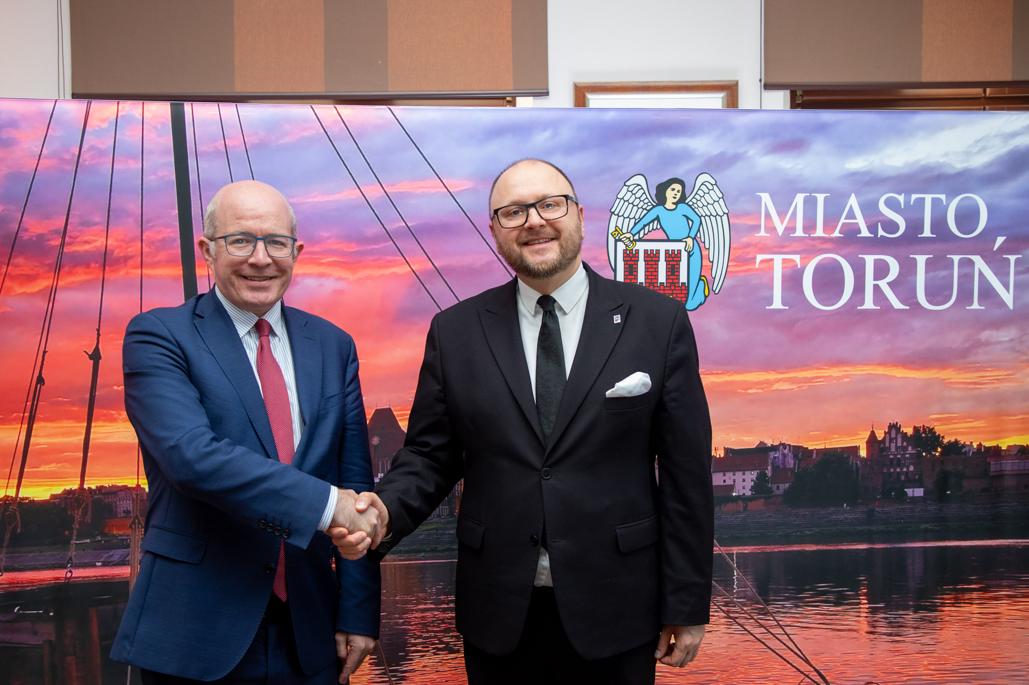 Ważnym tematem rozmowy był również potencjał rozwoju partnerstw w zakresie edukacji, kultury oraz gospodarki. Zwrócono uwagę na możliwość nawiązania kontaktów pomiędzy toruńskimi i irlandzkimi uczelniami wyższymi, a także wspierania inicjatyw młodzieżowych i wymiany doświadczeń w obszarze innowacji oraz zielonych technologii.