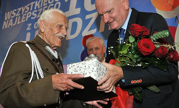 Prezydent Michał Zaleski złożył jubilatowi życzenia kolejnych lat w tak doskonałej kondycji, wręczył list gratulacyjny, bukiet kwiatów i upominek - zgodnie z sugestią krewnych był to ciśnieniomierz.