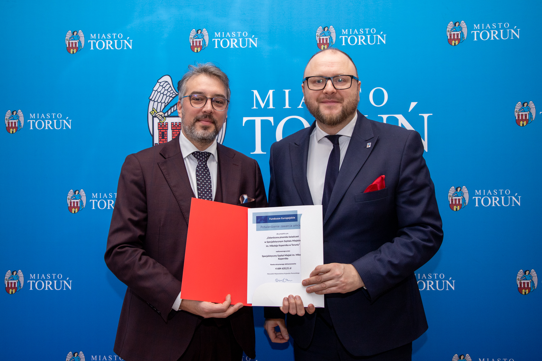 W Urzędzie Marszałkowskim Województwa Kujawsko-Pomorskiego wręczono dzisiaj umowy o finansowanie projektów z regionalnego programu Fundusze Europejskie dla Kujaw i Pomorza 2021-2027. Jedną z nich odebrał Jan Gesek, dyrektor Specjalistycznego Szpitala Miejskiego im. Mikołaja Kopernika w Toruniu.