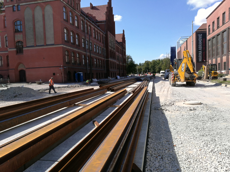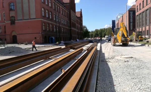 Pogoda sprzyja pracom prowadzonym na Wałach gen. Sikorskiego i ul. Chopina. Na budowę zwieziono już szyny tramwajowe, które są przygotowywane do zabezpieczenia przed korozją.