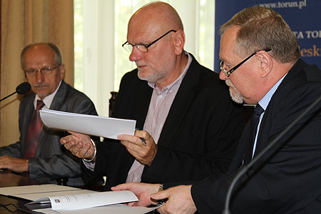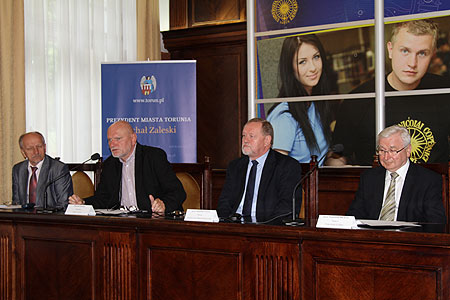 Porozumienie podpisali (od lewej) prorektor Politechniki Gdańskiej prof. Kazimierz Jakubiuk, prezydent Torunia Michał Zaleski, rektor Uniwerstytetu Mikołaja Kopernika prof. Andrzej Tretyn, rektor Politechniki Łódzkiej prof. Stanisław Bielecki